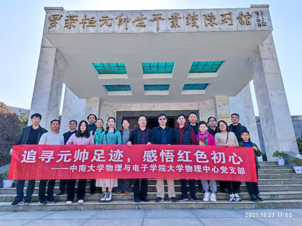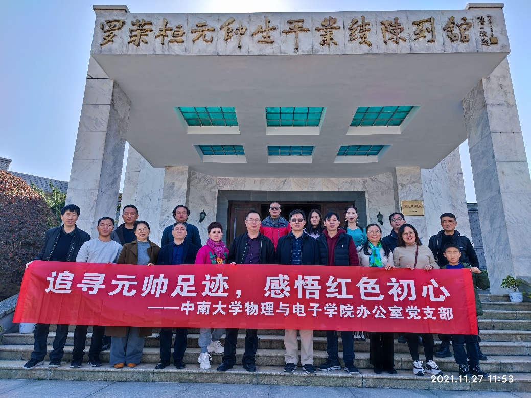 2021年11月27日,物理与电子学院办公室党支部和大学物理中心党支部联合开展“追寻元帅足迹 感悟红色初心”主题党日活动,旨在进一步深化党史学习教育,缅怀老一辈革命精神,学习罗荣桓元帅忧国忧民、公而忘私、廉洁自律的博大情怀,倡导学史、爱国、感恩的文化理念,勉励教职工心怀大家、服务师生、积极作为,引导每一名党员在学院学校的各项建设中发挥模范带头作用。