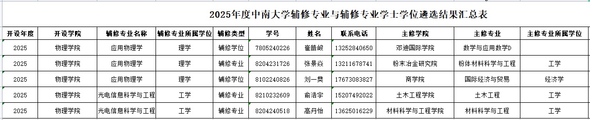 365英国上市公司在线2025年辅修专业和辅修专业学士学位拟录取结果如下: