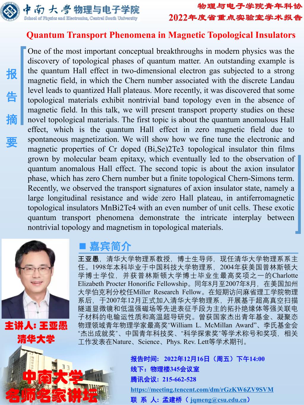 英国官方365上市名师名家学术论坛-Quantum Transport Phenomena in Magnetic Topological Insulators
