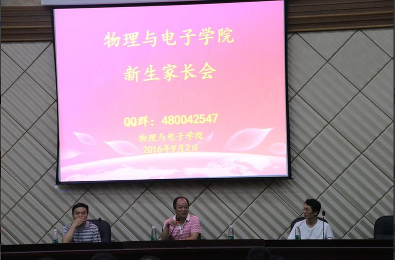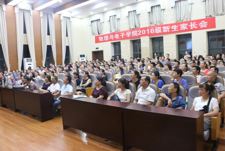 9月2日晚7:00,物理与电子学院2016级新生家长会于物理楼116报告厅顺利召开。院党委书记许宏武,副院长孙克辉、徐富新,党委副书记谢群出席家长会, 200余名新生家长参加了此次会议。