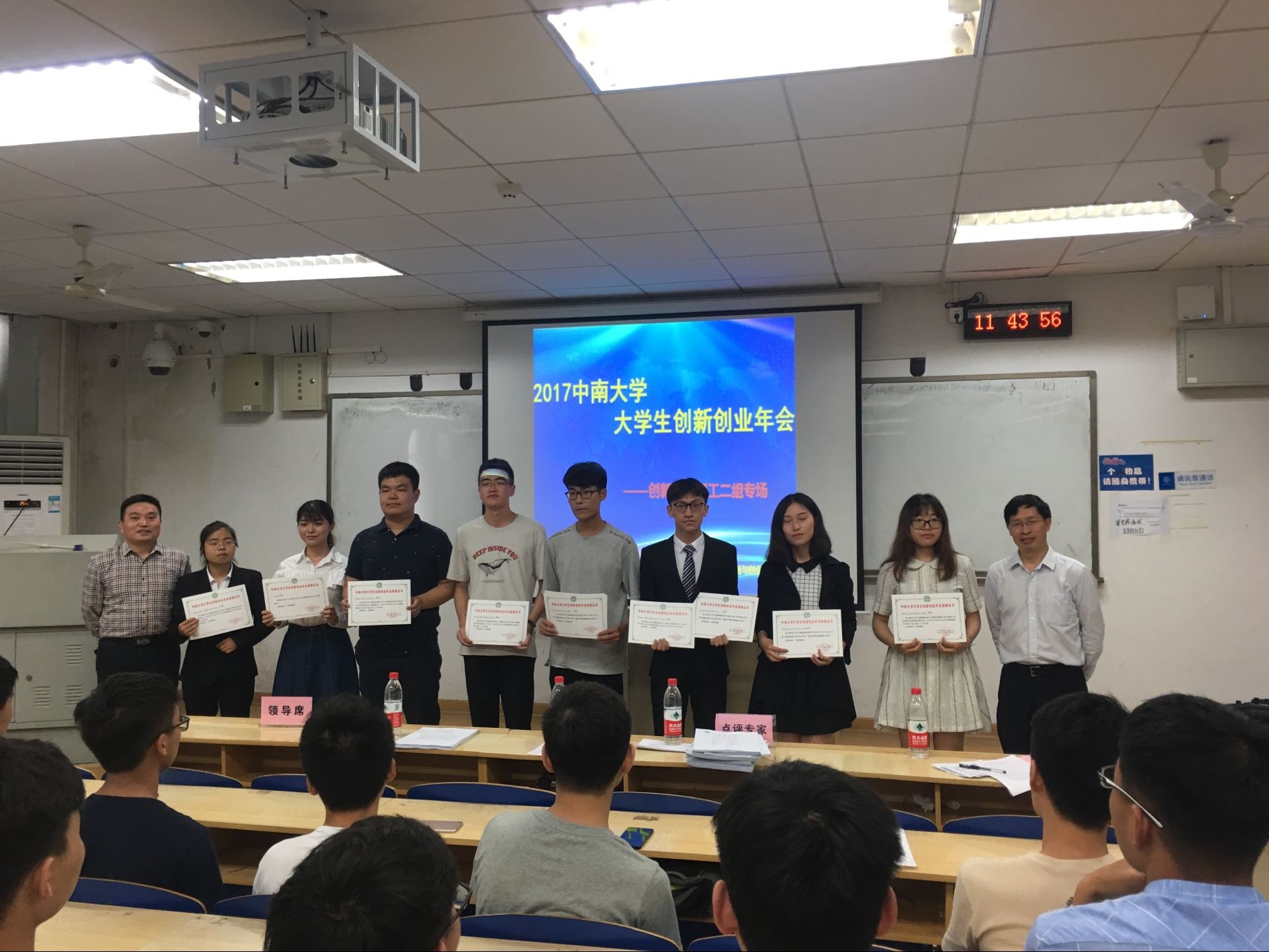 年会最后,孙克辉教授、郑洲顺教授对年会专场进行了精彩的总结。经评委专家和议,拟推荐由化学化工学院刘艳飞同学主持完成的《新型小檗碱衍生物的合成与生物活性研究》等3个项目参加全国大学生创新创业年会学术论文交流,拟推荐由机电工程学院郑洁宏同学主持完成的《墙面自动喷漆机器人》等2个项目参加全国大学生创新创业年会项目展示交流。经现场观众投票,由物理与电子学院胡梦黎同学主持完成的《磷烯晶体管器件设计及性能模拟计算》等3个项目荣获“我最喜爱的现场展示项目奖”。