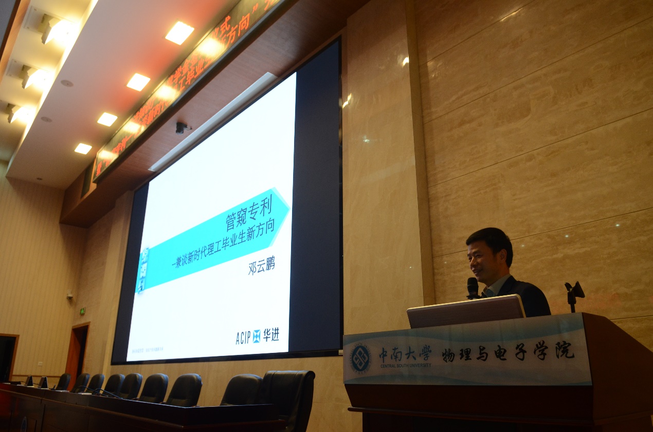 在随后的分享会上,邓云鹏副总裁以为“管窥专利 --兼谈新时代理工毕业生新方向”为题为学弟学妹们上了一趟精彩的生涯规划课程。他从“什么是专利”“为什么可以申请专利” “哪些内容可以申请专利”“怎么样申请专利”“专利跟我有什么关系”等内容入手,以生动形象的案例,结合向现场同学的提问展开阐述,加深了同学们对知识产权的理解,引导同学们科学合理地进行职业生涯规划。