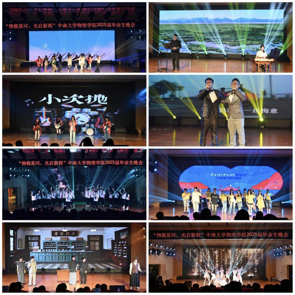晚会节目情感真挚。开场舞《等你的回答》点燃现场热情后,小次抛乐队带来的摇滚乐曲震撼登场;光电2102班合唱《夜空中最亮的星》,以歌声传递同窗情谊;热血小品《童家一夜》再现历史岁月,引人深思;舞蹈《World》节奏轻快、风格独特,展现青春活力,引发观众共鸣;毕业班学生李青松和王锦尧合唱歌曲《风再起时》旋律动人,唤起校园回忆;光电2101班诗朗诵铿锵有力,诉说青春梦想;应物2101班合唱《后来》深情演绎未来憧憬;活力舞蹈《Strategy》将气氛推向高潮,现场沸腾。结束曲环节,应物T2101班师生温情互动,为晚会画上圆满句号。