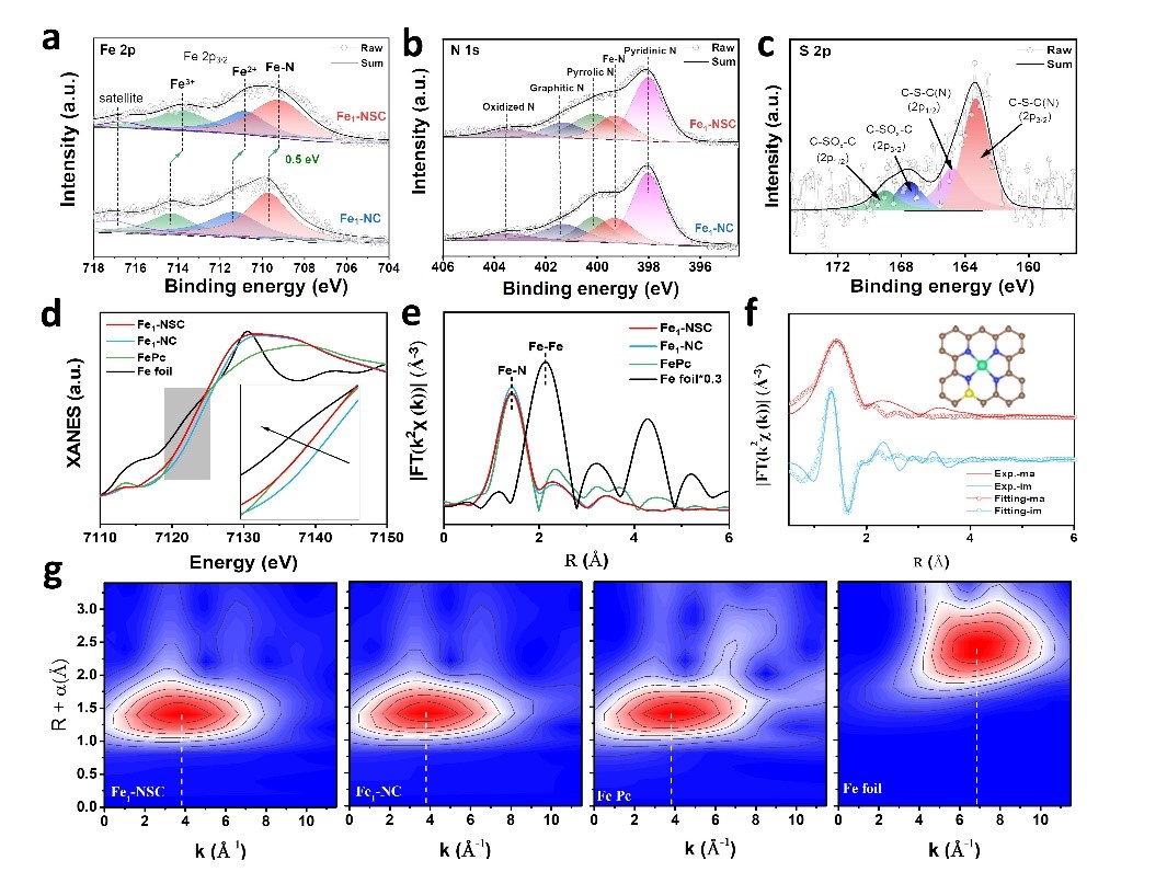 本文研究了S掺杂SAC上增强的电催化CO2RR性能,并揭示了质子供给效应在增强CO2RR动力学中起着重要的作用。通过简单的热解路线制备了第二壳层掺硫的FeN4,并通过XAFS和AC-HAADF-STEM进行了验证。值得指出的是,这种S掺杂策略导致CO2RR性能显著增强,FECO增加,TOF增大十倍。Fe1-NSC在流动池中展现高FECO和优异的长期稳定性。CO2-TPD结果和理论分析表明,S掺杂工程通过Fe的电子结构促进CO2活化。多重原位表征结果表明,FeN4SAC中的S掺杂促进了H2O分解为H*和随后的CO2质子化为COOH,DFT计算也证实了这一点。结合质子供给效应和电子结构工程,阐明了S掺杂对CO2RR性能的增强作用。这项工作通过在SAC中设计杂原子掺杂,突出了质子供应对CO2RR的独特影响,为面向多种电催化过程的高性能催化剂的设计提供了新的见解。