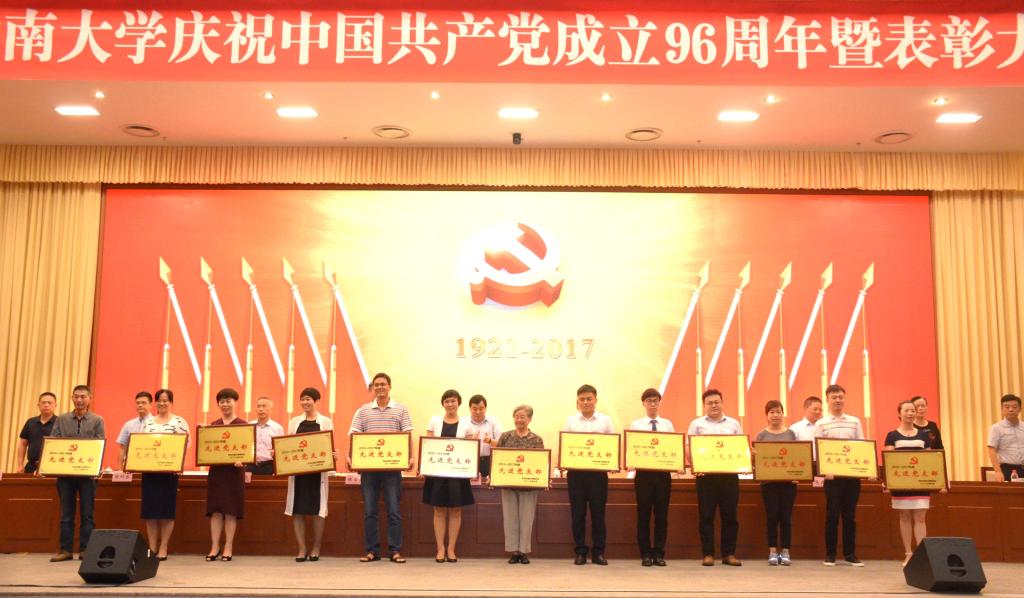 校党委副书记陈治亚宣读表彰决定,表彰了土木工程学院党委、离退休工作处党委、法学院党委、化学化工学院党委等4个先进基层党组织;材料科学与工程学院党委材料加工教工党支部等31个先进党支部(其中16个为教工党支部,15个为学生党支部);董龙云等13名优秀共产党员标兵;陈亚南等20名优秀党务工作者;陈宁等500名优秀共产党员。高文兵等校领导为先进集体和优秀个人颁奖。