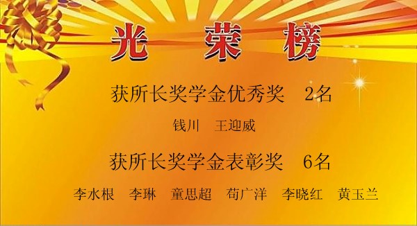 祝贺钱川、王迎威、李水根等获物理院超微超快所 2015-2016年度所长奖学金