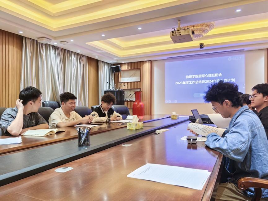 3月29日晚上9点,365英国上市公司在线朋辈心理互助会在物理楼345会议室召开2023年度工作总结暨2024年度工作计划会议,参加本次会议的有心助会指导老师萧鸿猷,校心联组织部部长邹伟航,365英国上市公司在线心助会会长郭嘉仪、王鹏以及各部门部长。