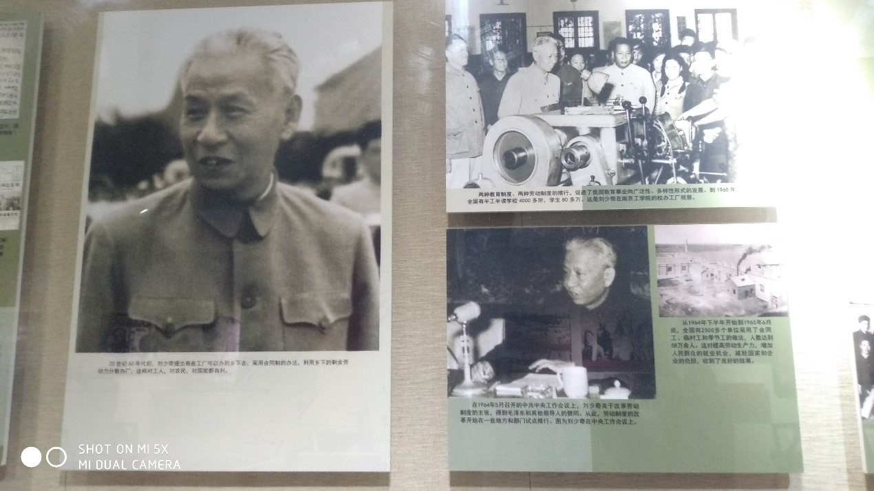 顶着大雨,我们来到“伟大的探索者 卓越的领导人”刘少奇生平业绩展览厅,走进刘少奇的第一个展览室,看到醒目的红色玻璃上写着刘少奇的不懈奋斗——为了中华民族的解放和独立。“刘少奇是新中国的伟大缔造者之一。为了中华民族的独立和解放,他和毛泽东、周恩来、朱德等老一辈革命家一起,在常人难以想象的条件下,进行了长期艰苦卓越的斗争。无论在多么复杂而险恶的环境中,他总以大无畏的革命胆略,独立把握方向,打开局面。他不愧为一位久经考验的马克思主义者和坚定的无产阶级革命家。”这是整个展厅关于刘少奇的的一个全面的阐述。接下来就是刘少奇通知的生平事迹的展书和他生平相关生活用品,及相关书信和文件的真实展示。回国后不久,相继在第二次全国劳动大会上当选为全国总工会副委员长,在中共第五次全国代表大会上当选为中央委员,中共福建省委书记,参加五卅运动等活动,加入抗日民族统一战线中等。