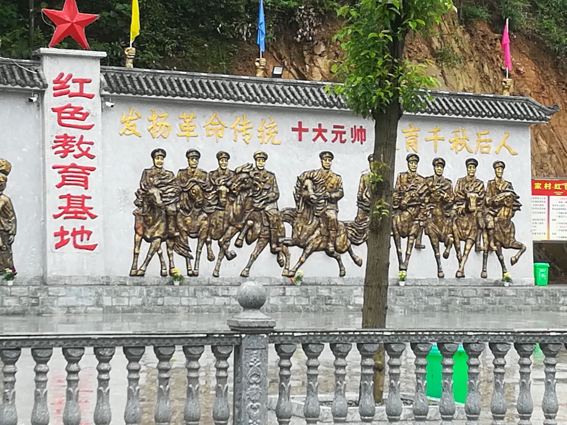 次日,我们怀着对大栗港镇朱家村的好奇继续深入桃江。颠簸的山路和迎面而来的大雨没能阻挡我们的热情,我们兴致勃勃,一路观赏着朱家村欣欣向荣的景象。主席石像,十大元帅浮雕,望子亭,烈士塑像,一切都是那么的精致整齐,广场上是崭新的彩色显示屏,播放着村民自行录制的红色宣传短片。在过去的几年里,朱家村新添了四座水坝,修建了村公路,改造了村办公室,配置了体育场,建立了敬老院,打造出了一个世外桃源。