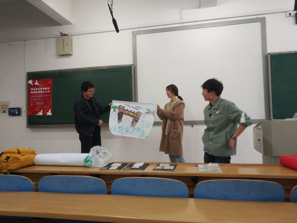 我们还展开了活力四射的知识竞答,大家争先恐后,答对的惊喜声与答错的遗憾声此起彼伏,现场气氛高涨。在此之后,我们分发纸笔,让每个小组以“未来的祖国和我”为主题进行画作。各个小组聚在一起,用简单的蜡笔挥洒各自对祖国的热爱和对未来的向往,绘画完成后各组进行了展示讲解与互评。