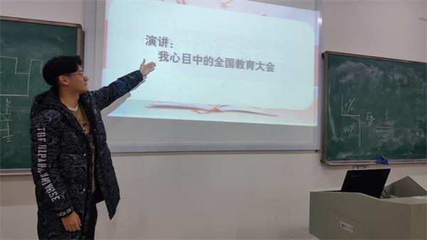 演讲环节包括“我心目中的全国教育大会”和“越奋斗,越青春,时代奋进青年大家说”两个主题演讲。朱家萱同学提到:“全国教育大会体现在我们身边,贴合最紧密的是这句‘全党全社会要弘扬尊师重教的社会风尚,努力提高教师政治地位、社会地位、职业地位,让广大教师享有应有的社会声望。’”,“优先发展教育事业、加快教育现代化、建设教育强国”是新时期教育领域的重大部署,是国家大计,是对提高国人综合素质的重要工程。”同学们评价:“教师是人类灵魂的工程师,我们作为受教育者,应积极响应习近平总书记的号召,营造‘尊师重教’的社会氛围,给教师和学生创造更加良好的育人环境有助于祖国下一代人的成长。”
