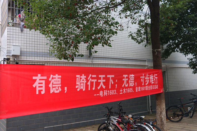 第三部分是文明用车的宣传与实践行动。电科1603班的同学们设计出精美的横幅和海报,向全校同学们宣传文明骑行是一种美德的理念。11月22日下午,全班同学又齐聚英国官方365上市新校区A座门前,以身作则,协助自行车管理队管理自行车。平日里,骑共享单车上学的同学们由于时间紧迫,自行车随意摆放的现象已经司空见惯,被堵得水泄不通的学校大门令进校的同学们十分头痛。电科1603班的同学们不畏辛劳,将被随意停放的共享单车彻底规整,为上下学的同学们开辟出一条通畅的道路。
