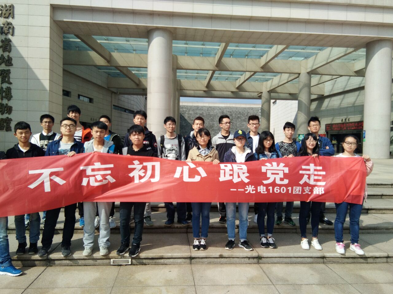 10月21日上午8时,物理与电子学院光电1601班在湖南省地质博物馆举行了主题为“领略祖国风采,展望美好未来”的团日活动。本次活动由团支书张志宇同学策划,组织委员王文远同学开展。