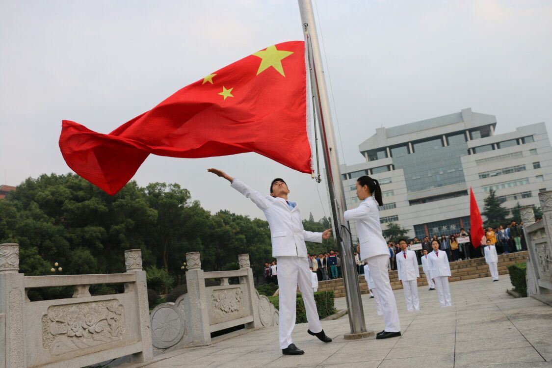 10月17日早上6:45,物理与电子学院在图书馆前坪举行了庄严而隆重的升旗仪式。物电院全体辅导员以及全院学生共同参与了本次升旗仪式。