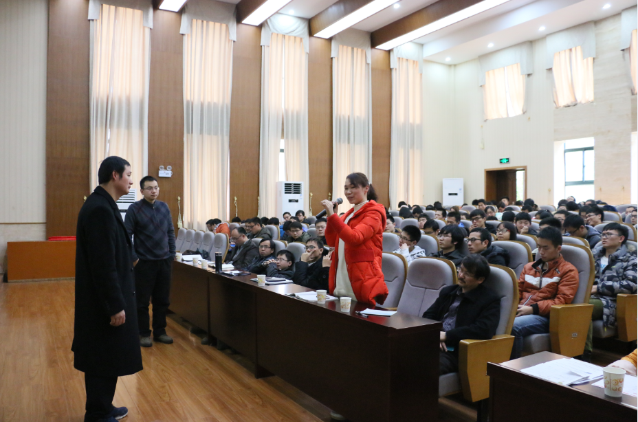 为了让同学们对太阳能电池有更全面的了解,黄教授着重介绍了太阳能电池的优势、原材料、当今研究成果等方面的相关知识。在互动环节中,在场的老师和同学们积极提问,气氛热烈。讲座最后,黄教授说道:“希望学生能有自己的想法,积极探索钻研。”