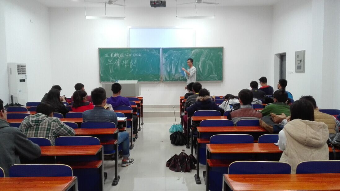 11月17日晚7时,物电院应物1401班在物理楼131教室召开了以“早做规划,目标坚定”为主题的班会。班会由班长李明明主持,班导师穆克朗和应物1401班的全体学生参加。班会伊始,班长李明明总结了这半个学期以来同学们的学习与生活的情况,并且提醒同学们要为以后早做规划。他特地列举了11级的直系学长学姐们的读研和就业情况,让同学们对今后的学习和努力的方向有了一定的认识。