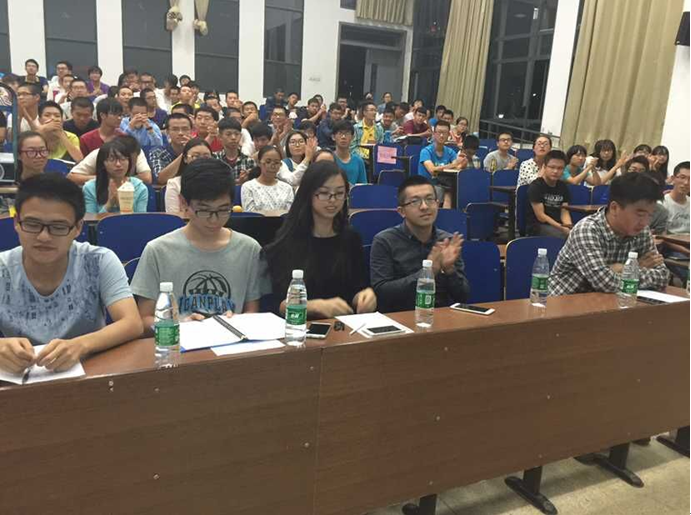 在热烈的掌声与欢呼中,学长学姐们进行了精彩的自我介绍以及经验分享。针对新生们普遍存在的一些问题,他们结合富有特色的PPT,从学习生活、人际交往、目标与爱好等方面为新生们答疑解惑。除此之外,他们还详细介绍了物理院的一些竞赛情况,如电子设计竞赛,嵌入式电路设计比赛等。肖佳珣便是分享了自己电子设计竞赛的经历与经验。她表示,大家要学会坚持,只要肯付出,总会有生生不息的希望和意想不到的惊喜。最后,徐鑫学长从学生工作、职业规划等方面做了总结,并祝愿新生度过一个值得骄傲的大学。学长学姐们惟妙惟肖的话语赢得了同学们的阵阵掌声。在随后的自由提问环节中,新生们提出了自己疑惑和有兴趣的地方,学长学姐们都进行了耐心解答,讨论气氛十分热烈。