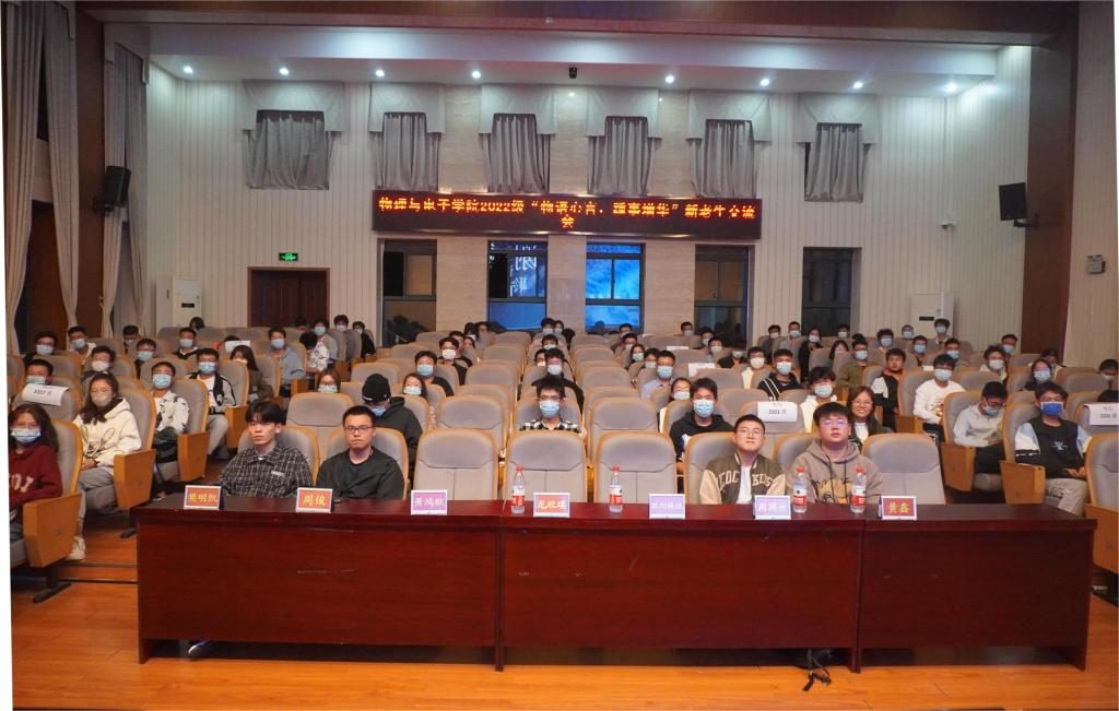 (通讯员 施佳璐)10月30日晚,我院在物理楼116会议室举办2022级“物语心言,踵事增华”新老生交流会。本次交流会线上线下同步进行,邀请了萧鸿猷、周俊、樊明凯、周搏升、黄鑫五位优秀学长为新生们分享经验。20级辅导员龙欣琪老师和22级辅导员欧阳旖旎老师及全体22级新生参与本次活动。此次交流会由学生会主席陈炫晔主持。