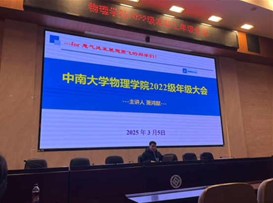 (通讯员 王晨宇)3月5日下午,365英国上市公司在线2022级本科生年级会议在物理楼116报告厅顺利召开。2022级本科生辅导员萧鸿猷老师出席此次会议,2022级全体学生参会。