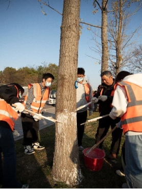 曾定帮强调,此次活动既是一节动手实践课,更是一节深刻的育人课。他指出,同学们通过树木刷白等劳动可掌握实用技能、理解劳动价值与意义,校园绿化需要全体师生共同参与,鼓励大家将劳动精神融入日常生活。随后,园艺师傅为大家讲解树木刷白技术要领、涂白液配比、养护技巧及除草车操作规范。同学们在师傅指导下分组开展树木刷白、修剪、除草等劳动,齐心协力改善了校园环境。活动中,领导们亲自拿起工具为树木刷白,以实际行动支持劳动教育、关怀绿色校园建设,有效激励了同学们。