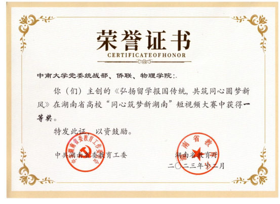我院主创作品荣获湖南省高校“同心筑梦新湖南”短视频大赛一等奖